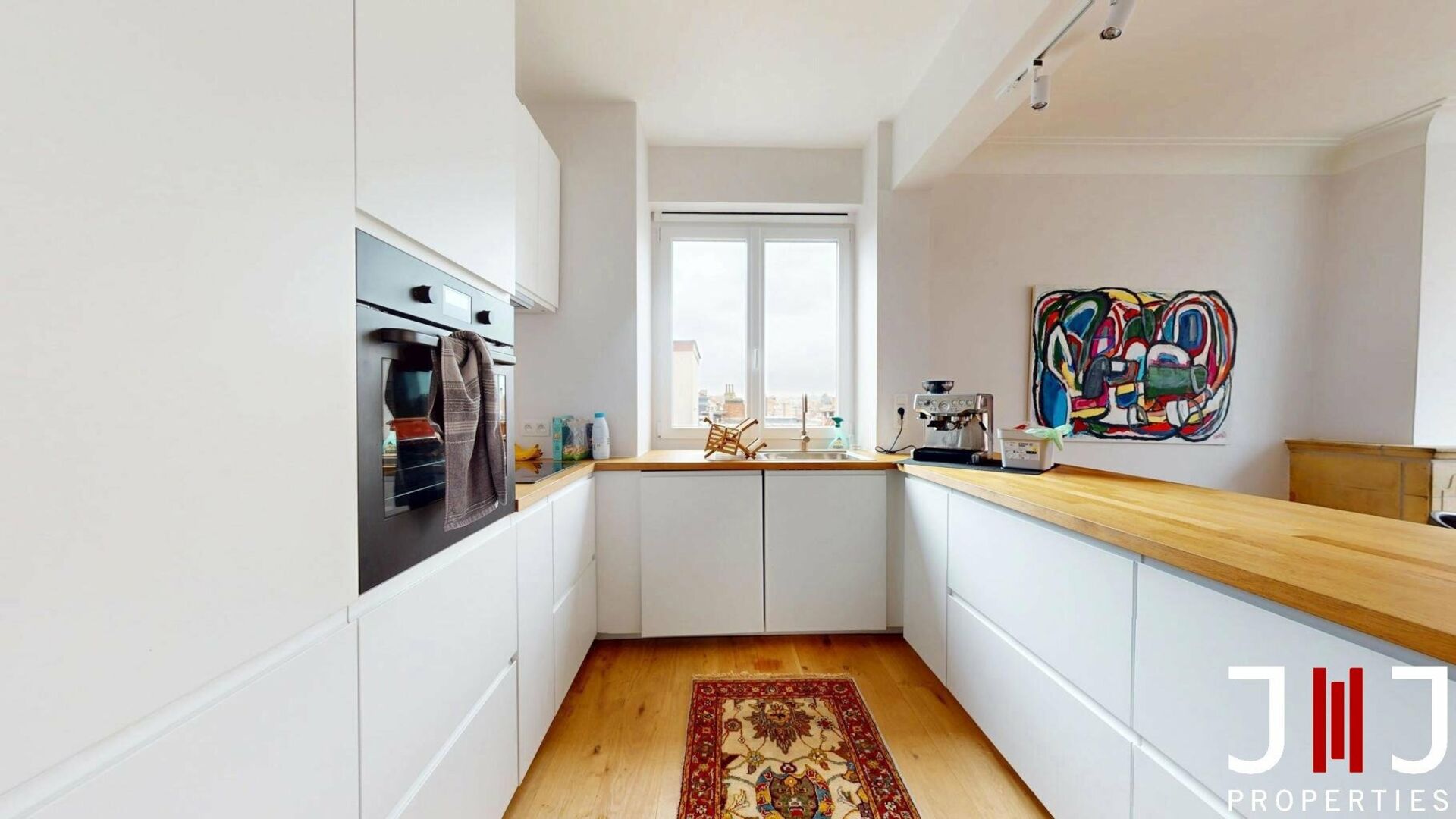 Etterbeek – Wijk Pétillon – Ideaal gelegen appartement Perfect gelegen in de onmiddellijke nabijheid van talrijke vervoersmiddelen, winkels, belangrijke verkeersaders en de EU-instellingen, biedt J&J Properties u dit aangename appartement aan met optimaal comfort. Dit volledig gerenoveerde appartement, gelegen op de 5e verdieping met lift en met een oppervlakte van 85 m² (volgens EPC), is als volgt ingedeeld: een uitnodigende inkomhal, een lichte woonkamer met eetruimte, een volledig ingerichte keuken, twee comfortabele slaapkamers, een moderne badkamer, een wasruimte en een apart toilet. Het appartement beschikt ook over een aangenaam terras – ideaal om van zonnige dagen te genieten. Technische informatie: Het EPC-certificaat werd opgesteld vóór de vervanging van de ramen; sinds de renovaties wordt de energieprestatie geschat op niveau E. Elektriciteit conform, gasverwarming, PVC-ramen met dubbele beglazing (2025). Kosten: €250 per maand, inclusief gemeenschappelijke kosten en verwarming.Een garage is optioneel beschikbaar voor €150, evenals een kelder. De ideale ligging, de lichtinval en het wooncomfort maken van dit appartement een must-see! REF J&J: 7201992