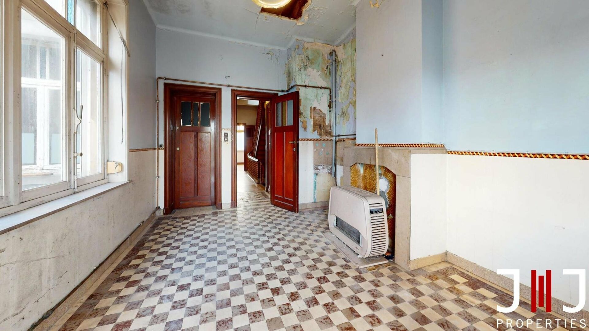 Gelegen op de tweede en derde (bovenste) verdieping van een gebouw met 3 wooneenheden, beschikt het appartement over ruime kamers en authentieke charme (parketvloeren, decoratieve open haarden, hoge plafonds, enz.). Uitgebreide renovatiewerken zijn vereist, maar de structuur en algehele staat bieden uitstekende mogelijkheden.
